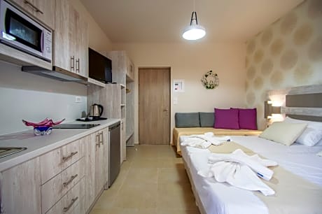 Paradise Apartments in Laganas provides accommodations with a bar and a shared lounge. This condo hotel offers free private parking, an elevator, and free Wifi. The property provides an outdoor swimming pool, a garden, and rooms with garden views. The condo hotel will provide guests with air-conditioned units offering a wardrobe, a kettle, a microwave, a fridge, a safety deposit box, a flat-screen TV, a terrace, and a private bathroom with a walk-in shower. A balcony with an outdoor dining area and pool views is offered in select units. At the condo hotel, the units come with bed linen and towels. À la carte and continental breakfast options with warm dishes, pancakes, and fruit are available. There is a coffee shop, and packed lunches are also available. For guests with children, the condo hotel features kids pool, an indoor play area, and a baby safety gate. If you'd like to discover the area, cycling is possible in the surrounding area, and Paradise Apartments can arrange a car rental service. Laganas Beach is 1.4 miles from the accommodation, while Agios Dionysios Church is 3.7 miles away. Zakynthos International Airport is 2.5 miles from the property.