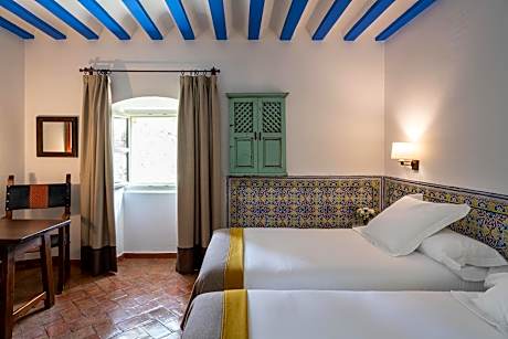 Set just a short walk from the central plaza of Almagro, this restored 16th-century convent offers charming arched courtyards, beamed ceilings and an outdoor seasonal swimming pool. The Parador de Almagro has been beautifully transformed into a hotel with fantastic facilities. Enjoy the architecture of the building as you walk up the wide, wooden staircase. Admire the wooden ceilings, huge tapestries and original artwork hanging on the walls. Spacious and airy, the beautifully decorated bedrooms were once inhabited by the monks of the original building. Enjoy wooden beams, tiled floors and pretty tiled details on the walls. The decor is in complete harmony with the history of the building and its historic setting. Soak up the sunshine on the poolside lounges in the hotel’s peaceful gardens before enjoying a refreshing dip in the outdoor pool. The restaurant serves modern cuisine based on characteristic Manchegan dishes and made with fresh local produce.A bar is also featured. Ciudad Real train station is 26 minutes drive from the property.