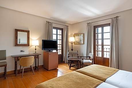 This charming, red-brick building is set on the banks of the River Ebro, surrounded by a lush garden full of colorful flowers and palm trees. The Parador de Calahorra is housed in one of the most important historic buildings in the region of La Rioja. The local city of Calahorra is famous for its Roman background, and is built around a cathedral dating from Roman times. Stroll through the Parador and admire the large doorways, Christian artwork and other Medieval-style decor. Here you can relax by the fireplace with friends or family or head to the hotel’s restaurant. This charming venue serves characteristic Riojan dishes accompanied by the region’s world-famous wine.