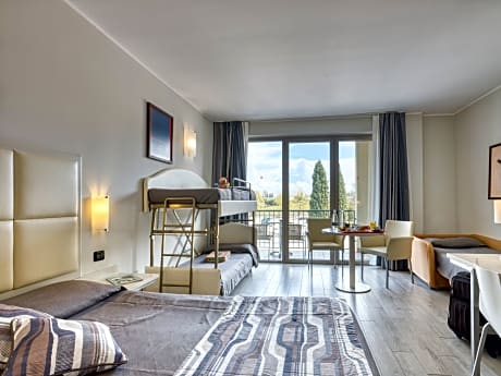 Parc Hotel is a modern property with indoor and outdoor swimming pools, wellness center, playground, and sports fields. It is a 5-minute drive from the Peschiera exit of the A4 Motorway. All rooms are spacious and classically furnished, Standard rooms feature a balcony or a terrace and are located in the main building; other room categories are located in the main building or in 2 nearby lodges. Air conditioning is available in summer. Various restaurants and bars are available, for buffet and à la carte meals and pizza. The professional staff provides entertainment activities on site. Parc Hotel offers free parking, and is surrounded by the vineyards of Veneto. Gardaland amusement park and the shores of Lake Garda are both approximately 3.1 mi away.