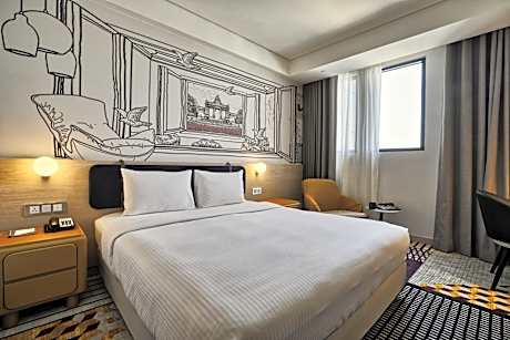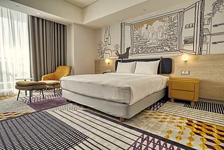 The spacious double room provides air conditioning, soundproof walls, as well as a private bathroom featuring a walk-in shower and a bath. This double room features a wardrobe, flat-screen TV with cable channels, city views, as well as chocolate for guests. The unit offers 1 bed.