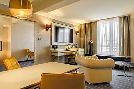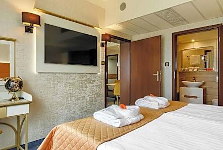 The modern, 4-star Park Hotel Diament Wrocław is located directly by the Wrocław Technology Park, close to A4 motorway and Wrocław ring road A8. Within a 10-minute drive the Wrocław Airport, the Wrocław Główny Railway Station and the city center can be easily reached. It offers air-conditioned rooms with LCD satellite TVs and free high-speed WiFi. There is a monitored parking, as well as underground garage. The rooms at Park Hotel Diament are fitted with tea and coffee making facilities and work desks. Their private bathrooms come with a shower and hairdryer. Ironing facilities are provided free of charge. Park Hotel Diament Wrocław features a fitness center and sauna. The front desk staff is available 24 hours a day and can arrange laundry services and store guests’ belongings in a safety deposit box. The hotel offers a business corner where guests can use professional office facilities. Every morning, a varied buffet breakfast is served which consists of more than 100 fresh products and dishes made with regional ingredients. Guests can also admire live cooking in Atmosfera restaurant.