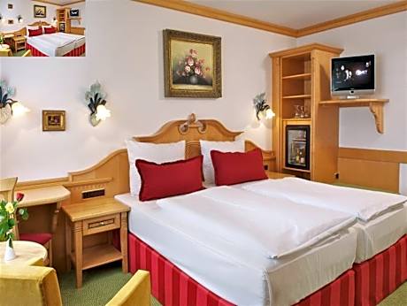 This 4-star hotel enjoys a quiet location in a park in the west of Munich, steps from the Friedenheimer Straße underground station. It offers a bar, fitness room, sauna and Bavarian-style rooms. The Park Hotel Laim is a family-run hotel located directly in the Westpark, in the Laim district of Munich. The large and individually furnished rooms of the Park Hotel Laim all include a flat-screen TV, internet access, a desk, mini-bar and a private bathroom. The mini-bar is included in the room rate. Breakfast is available each morning at the Park Hotel Laim. The Park Hotel Laim is 4 direct underground stops from the Theresienwiese beer festival location, 5 stops from Munich Main Station and 6 stops from the Karlsplatz shopping and pedestrian area.