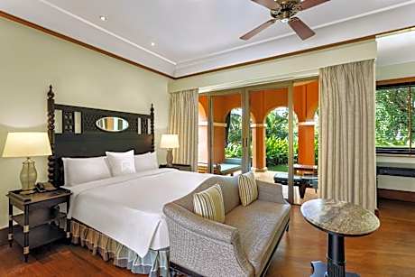 Great care is taken to ensure guests experience comfort through top-notch services and amenities. Remain linked during your visit by utilizing the complimentary internet access available. Prior to your check-in date, you can arrange airport transportation services, guaranteeing a seamless and efficient experience for both arrival and departure.Services offered by taxi and car hire at the hotel ensure effortless exploration of Goa.The hotel offers complimentary parking for guests who arrive with their own mode of transport.Effortlessly plan your daily activities and travel requirements with concierge service, express check-in or check-out and safety deposit boxes provided by the front desk services.Securing top-notch tickets and reserving prime dining spots become effortless through assistance from the hotel's ticket service.For extended visits or whenever required, the dry cleaning service and laundry service ensures your preferred travel garments remain clean and accessible.During leisurely days and evenings, in-room amenities such as 24-hour room service, room service and daily housekeeping enable you to maximize your stay in the room. In limited designated zones, smoking is exclusively permitted. Crafted for coziness, every guestroom provides an array of features, guaranteeing a tranquil night's sleep while maintaining the level of comfort. At ITC Grand Goa, a Luxury Collection Resort & Spa, Goa, a selection of rooms can be found that showcase unique design elements such as a balcony or terrace. Expand your in-room entertainment choices with various amenities, such as cable TV offered in certain accommodations. Rest assured that your hydration needs will be met, as some guestrooms are equipped with instant tea and mini bar.It is worth noting that certain guest bathrooms feature a hair dryer, toiletries and bathrobes for your convenience. Begin your day on a delightful note with a scrumptious complimentary breakfast, consistently served at ITC Grand Goa, a Luxury Collection Resort & Spa, Goa.Begin your holiday mornings right with your essential cup of coffee, offered daily at the cafe on-site. During your visit, indulge in a range of delightful culinary choices at hotel to enhance your experience.Experience a fantastic evening effortlessly! Relish an entertaining night without venturing beyond the confines of the bar. ITC Grand Goa, a Luxury Collection Resort & Spa, Goa provides a superb assortment of leisure amenities for guests to enjoy.During your stay, the hotel provides direct access to a beach, ensuring you remain near the sea throughout your visit.Treat and spoil yourself by stopping at massage, salon, steam room, spa and sauna for a memorable experience. Begin your holiday perfectly by taking a plunge into the swimming pool.At the hotel, enjoy a laid-back beverage experience by the poolside bar, sipping on a soothing cocktail.Eliminate those holiday calories by stopping by hotel and making use of their well-equipped exercise amenities.