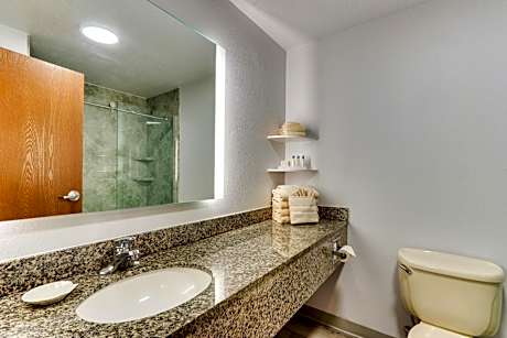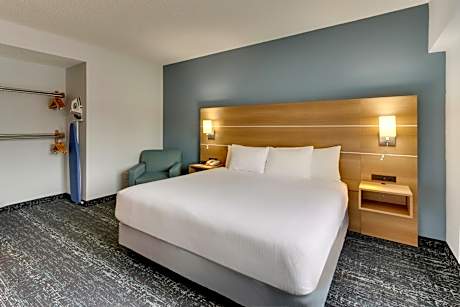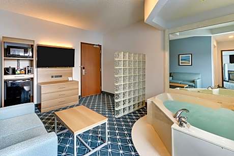 The resort features a heated indoor pool and hot tub, providing a perfect way to relax after a day of exploring. With its prime location, guests can easily visit nearby attractions such as Chateau Chantal Winery, just 15 miles away, and the Great Lakes Children’s Museum, a 10-minute drive from the hotel.