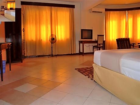 This air-conditioned double room is equipped with a desk, cable TV, telephone and a small refrigerator.