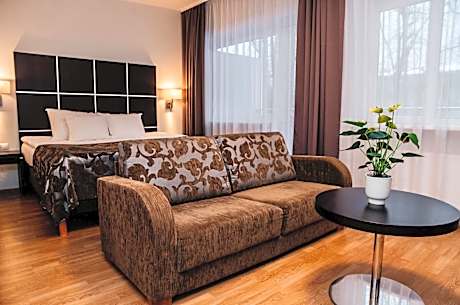 The modern Pärnu Hotel is located on the Rüütli shopping boulevard in the center of Pärnu, next to the city’s main square. It offers spacious rooms with free Wi-Fi, cable TV and a balcony. All rooms at the Pärnu are bright and classically furnished. Each comes with a mini-bar and a bathroom with hairdryer. All rooms overlook the town and the parks. A buffet breakfast is served at the Embecke restaurant, which specializes in Estonian and international dishes. Drinks can be enjoyed at the bar. Pärnu Hotel is located 1969 feet from the Pärnu River. The Baltic Sea beaches are just 0.9 mi away. There is a private parking lot on site with a limited number of parking spaces.