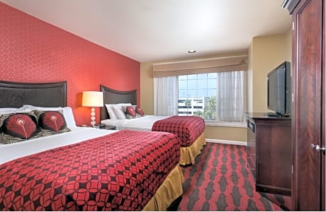 Conveniently located off Interstate 5, this all-suite Anaheim hotel features an outdoor pool and 2 hot tubs. All air-conditioned suites offer free WiFi and. Shuttle service to Disneyland is also available. A satellite TV, an iPod docking station, a CD and DVD player, a dining table and a hairdryer are included in all of the comfortable suites at Peacock Suites. Suites also offer kitchenettes with a microwave, a fridge and tea and coffee-making facilities. Peacock Suites Anaheim offers a reception desk where guests can get information and pickup tickets for local attractions. For convenience a gift shop, a guest launderette and a business center with fax and photocopying services are also located on-site. Anaheim Convention Center is 1 mile from the hotel. Knott’s Berry Farm is 12 minutes’ drive away. Long Beach Airport is 20 miles away. The resort will be undergoing construction from Sep. 9, 2024 through Oct. 11, 2024. During this time, entry to parking and the guest registration area will be affected. Additionally, you may encounter noise, dust, odor, and work crews on-site during business hours. Dates are subject to change.