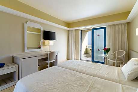 Air-conditioned room with a private balcony, satellite TV, mini fridge and hairdryer.