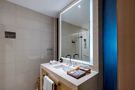 Suite comes with a safety deposit box, a mini-bar and a fridge.