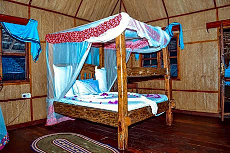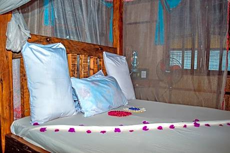 Pemba Lodge is an eco-friendly resort offering bungalows made out of recycled boats and natural local materials. Each one is has a secluded location in the large garden and has direct access to the beach. The bungalows are raised from the ground on stilts to capture the sea-breeze and can be accessed by a small ladder. They include four-poster beds surrounded by mosquito nets and a rainwater shower. Guests can dine at the restaurant which provides fresh organic meals prepared with wild seafood and vegetables from the garden. There is also a bar made out of recycled-wood. Snorkeling and kayaking facilities are provided by the Pemba Lodge and can be used to explore the mangroves. Diving trips and Swahili massages can be arranged upon request. The resort is located 45 minutes’ drive from Pemba Airport and 30 minutes’ away from the Ferry Port Mkoani by car.