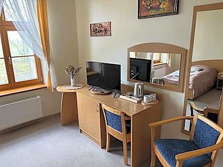 Pensjonat Myśliwski in Cedynia provides accommodations with a garden, barbecue facilities, and a shared lounge. This property offers access to a terrace, free private parking, and free Wifi. The accommodation provides a shared kitchen, full-day security, and luggage storage for guests. At the bed and breakfast, all units are fitted with a desk, a flat-screen TV, a private bathroom, bed linen, and towels. There's a seating and a dining area in all units. The rooms are equipped with heating facilities. Buffet and continental breakfast options with local specialities, pancakes, and fruit are available. With an outdoor fireplace and a picnic area, this bed and breakfast offers plenty of opportunities to relax. Solidarity Szczecin-Goleniów Airport is 69 miles away.
