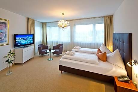 This modern and elegant 4-star hotel is only 2.5 mi from the city center, right next to Innsbruck Airport and the A12 motorway. Hotel Penz West offers free WiFi, free parking, and a top-floor spa area offering panoramic mountain views. The spa area can be used free of charge and features a Finnish sauna, a steam bath, an infrared cabin, and a modern gym. Bathrobes are provided for free. The spacious rooms at Penz West offer satellite TV and a bathroom with hairdryer. Most rooms have a marble bathroom and parquet flooring. A free internet terminal is available in Hotel Penz West’s lobby.