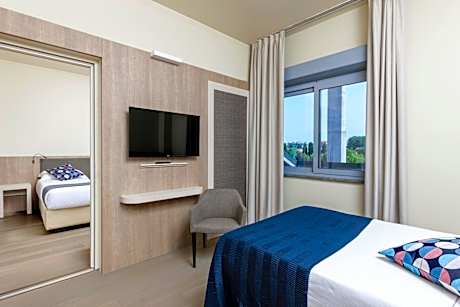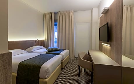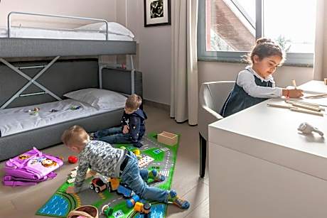 This unit is composed of a double/twin room and a connected room with a French bed.