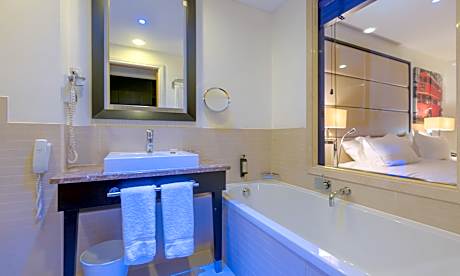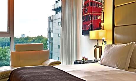 Overlooking Battersea Park, the 4-Star Pestana Chelsea Bridge offers stylish rooms. 2 rail stations can be reached in just 10 minutes by foot. Each spacious air-conditioned room has a luxury bed, a flat-screen TV and an iPod docking station. The modern private bathrooms include separate baths and showers. There is also room service, available for limited hours. The Chelsea Bridge, flagship hotel of the Pestana Hotels Group has immediate access to Battersea Park, and the shops of Sloane Square are just a 15-minute walk away. The hotel offers a Bar and the restaurant Atlántico which serves international cuisine. At the moment, the restaurant is only serving breakfast, however a limited menu it’s available at our Atlántico Bar.