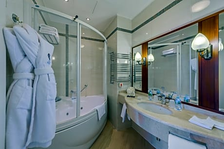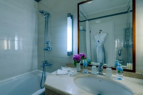 This spacious room has large windows, a flat-screen TV, a mini-bar and access to the VIP lounge, gym and swimming pool. The private bathroom features slippers, hairdryer, bathrobes and free toiletries.