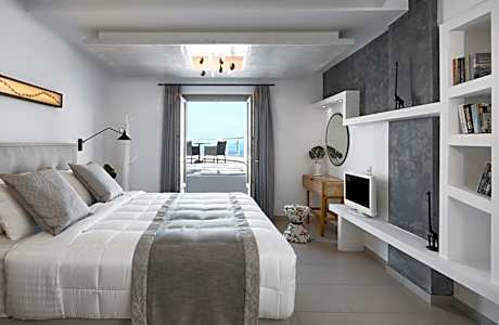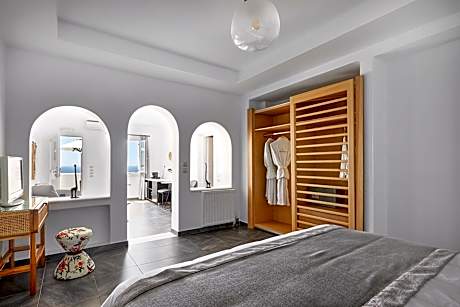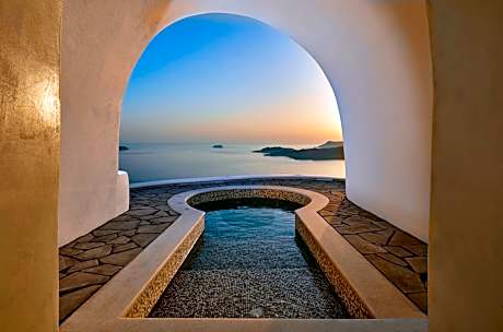 Petit Palace sits on the edge of the caldera, at Agia Irini area. The luxurious complex offers suites with private pools and stunning volcano views, 492 feet above the sea. The spacious, designer furnished Petit Palace suites are carved into the rock and decorated in the characteristic Cycladic style. They are luxuriously, offering free Wi-Fi and satellite flat-screen TV. Elia Restaurant serves fine Mediterranean cuisine in a romantic poolsite setting. Petit Palace also has an elegant bar, where guests can have an evening cocktail while enjoying breathtaking caldera views. Certified Greek breakfast is served in the morning. Petit Palace is conveniently located 1.6 mi from Fira, where guests can find many restaurants, bars and shops. Santorini Airport is at 2.9 mi. Free on-site parking and free 2-way transfer to Fira are provided. License Number(s): 1144Κ124Κ0815201