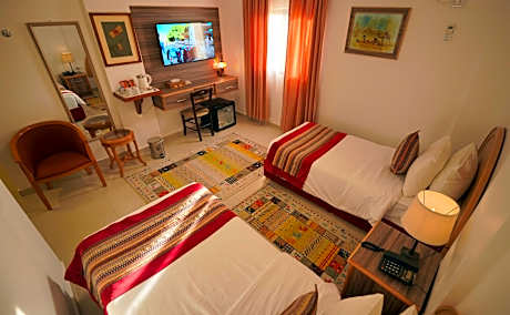 Experience an abundance of unparalleled facilities and features at petra plaza hotel. Maintain seamless communication using the complimentary Wi-Fi at hotel.Effortlessly arrange transportation to and from the airport using the hotel's airport transfer services.Discovering Petra becomes even more accessible through the taxi and car hire amenities provided at the hotel. For visitors traveling by automobile, complimentary parking is available.During your stay at this fantastic hotel, the attentive front desk personnel can provide you with a range of amenities such as concierge service, luggage storage and safety deposit boxes.In search of city's top entertainment, seek assistance at the hotel's ticket service and tours for reservations. At the hotel, utilize the on-site dry cleaning service and laundry service to maintain your beloved travel attire fresh, allowing you to bring fewer clothes. Craving relaxation? Make the most of your stay at the petra plaza hotel with convenient amenities like 24-hour room service, room service and daily housekeeping at your disposal.Kindly note that smoking is prohibited in the hotel to ensure fresher air for all visitors. For visitors wishing to smoke, designated smoking zones can be found. At petra plaza hotel, every guestroom is provided with convenient amenities and fittings to ensure a comfortable stay. Enhance your experience at hotel with the knowledge that certain rooms are equipped with linen service, blackout curtains and air conditioning for your convenience.Certain rooms boast in-room amusement features such as television and cable TV, offering guests an enjoyable stay.In select rooms within the hotel, bottled water, a coffee or tea maker, instant coffee and mini bar is available to cater to your requirements when desired.It is worth noting that certain guest bathrooms feature a hair dryer and toiletries for your convenience. Begin your day with a scrumptious on-site breakfast available each morning at petra plaza hotel.Begin your day feeling refreshed and invigorated as you enjoy a delightful cup of quality coffee available at the cafe situated within the hotel.At the hotel, an assortment of easily accessible and delicious meal choices are available to satisfy your appetite whenever it strikes. At petra plaza hotel, guests with diverse dietary needs are accommodated by offering an array of cuisine options, including kosher and halal.Enjoy an entertaining evening with your fellow travelers at the hotel's nightclub. At petra plaza hotel, visitors have the option to receive groceries directly in their accommodation, ensuring outstanding comfort and simplicity when it comes to meals. At the hotel, discerning guests can also enjoy on-site culinary facilities like BBQ facilities tailored to their preferences. During your stay at hotel, an array of engaging activities and amenities guarantees a delightful experience. Conclude your holiday experience perfectly by visiting salon before you depart.