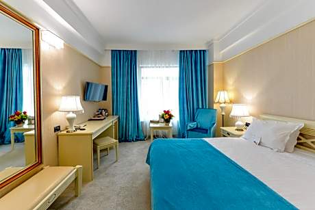 Located in Baneasa, a northern neighborhood of Bucharest, Phenicia Grand Hotel is an impressive 85 ft² hotel located 15 minutes away from the Bucharest International Airport and 10 minutes from the Romexpo Fair and Trade Center. Phenicia Grand Hotel provides luxuriously furnished, spacious rooms with free WiFi, cable TV and air conditioning. They all feature coffee and tea making facilities and a complimentary bottle of water. Delicious cuisine from all over the world can be enjoyed in the Saidoun Restaurant within the complex. The restaurant serves international and Lebanese cuisine. You can enjoy the relaxing atmosphere at the lobby bar, along with a variety of Oriental coffee and tea or make use of the fitness center. Further entertainment opportunities include a private club. Guests can also make use of free spacious private free parking and 10 conference rooms.