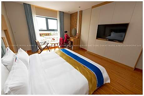 Phú Long Tam Kỳ Hotel & Restaurant offers top-notch services and amenities, ensuring guests experience utmost comfort.Share your photos and respond to emails at your convenience, thanks to the free Wi-Fi internet access offered by hotel. Taxi and shuttle offerings at the hotel simplify arranging your excursions, explorations, and additional activities in Tam Ky (Quang Nam). Visitors can take advantage of complimentary parking directly at the hotel. Reception services such as luggage storage and safety deposit boxes are available to accommodate your requirements.Should you desire access to the top entertainment in the city, assistance can be provided by the hotel's tours. Traveling with minimal luggage is achievable at Phú Long Tam Kỳ Hotel & Restaurant due to the hotel's laundry service ensuring your garments stay fresh. Room amenities like 24-hour room service and daily housekeeping contribute to making a perfect selection for your stay.Smoking is limited to specified smoking zones. Each accommodation at Phú Long Tam Kỳ Hotel & Restaurant is thoughtfully created and adorned to provide visitors with a comfortable, home-like atmosphere.In certain rooms, the hotel offers blackout curtains and air conditioning for guest convenience and satisfaction. In select rooms, guests at the hotel can enjoy top-notch in-room entertainment with daily newspaper, television and in-room video streaming available for their convenience. Rest assured, in a few chosen rooms, you will find the convenience of a refrigerator, bottled water, instant coffee and mini bar at your disposal.Phú Long Tam Kỳ Hotel & Restaurant offers a hair dryer, toiletries and bathrobes in the restrooms of specific accommodations. Begin your holiday on a high note. At Phú Long Tam Kỳ Hotel & Restaurant, your mornings are greeted with a delightful, free breakfast. Experience the delight of a fresh morning by savoring excellent coffee at the cafe situated within hotel.Should you prefer not to venture out for a meal, the enticing culinary choices at hotel are always available for your satisfaction.Experience an unforgettable evening with your fellow travelers just a short distance away, at hotel's bar. Phú Long Tam Kỳ Hotel & Restaurant provides a superb assortment of leisure amenities for guests to enjoy.Unwind after a long day by stopping by massage and spa to rejuvenate your senses. Bypass the formal attire and choose a laid-back mixed drink or brew at hotel's waterside lounge.