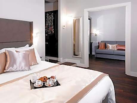 This suite has bathrobes, a mini-bar and a seating area. It consists of a large double bed and a small double sofa bed. It includes a hydromassage shower complete with Bluetooth audio connection.