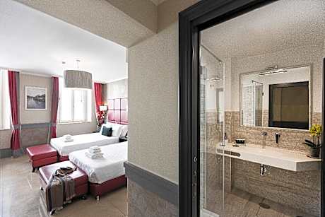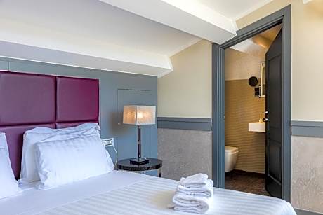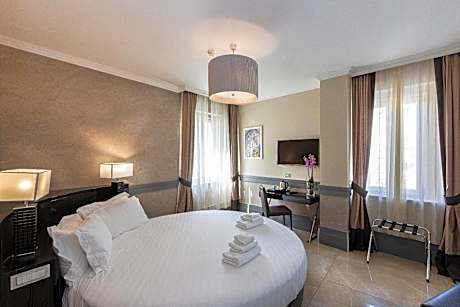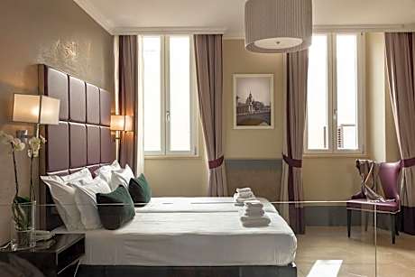 Set just next to Piazza Venezia, in the very center of Rome, great value Hotel Castellino Roma offers the perfect location for exploring all the city’s sights. The hotel features free WiFi throughout and modern-style rooms. Each room at the Piazza Venezia hotel is decorated with works of modern art, and includes a satellite flat-screen TV, air conditioning and a private bathroom with hairdryer, slippers and toiletries. Some rooms have views of Piazza Venezia square, while suites have a spa bath. An American buffet-style breakfast is provided daily in the dedicated breakfast room. With the Roman Forum on one side, just a 5-minute walk away and the Trevi Fountain on the other, you couldn’t be better placed. Fashion and shopping streets are just a few steps away and of course, right opposite the hotel you have the huge Vittorio Emanuele II monument.