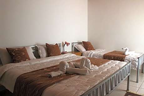 This air-conditioned quadruple room is consisted of of a flat-screen TV with satellite channels, a private bathroom as well as a balcony. The unit has 4 beds.