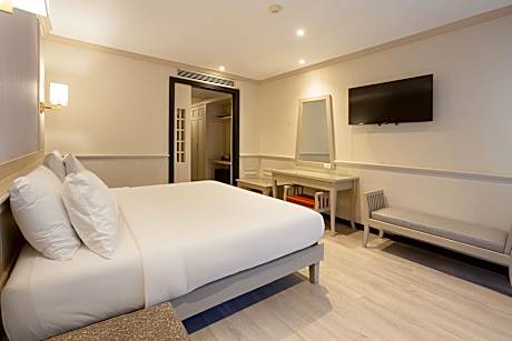 This family room features a pool with a view. The spacious family room features air conditioning, a private entrance, a terrace with city views as well as a private bathroom boasting a walk-in shower. The unit has 2 beds.