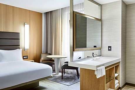 Comfortable Accommodations: Nestled within a historic building, the AC Hotel Houston Downtown offers a unique stay featuring complimentary WiFi, mini-fridges, air-conditioned rooms and deluxe bedding. Guests can enjoy pet friendly accommodations (fee applies). Exceptional Facilities: Guests can enjoy an European style à la carte breakfast buffet at AC Kitchen (fee applies), on-site Starbucks® and unwind in the evening with tapas and drinks at the AC Lounge. Additional amenities include a 24-hour fitness center, on-site meeting space and free WiFi throughout the property. Prime Location: Popular nearby attractions include Daikin Park, Alley Theater, Houston Theater District, Toyota Center, Shell Energy Stadium The Downtown Aquarium and the George R. Brown Convention Center.