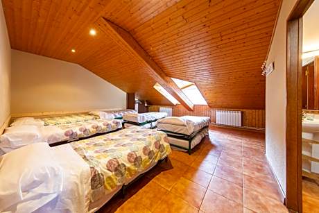 Featuring a balcony overlooking the garden and the mountains, this quadruple room is heated and has tiled floors. The bathroom comes with a shower. Extras include a desk.