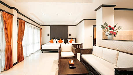 Great care is taken to ensure guests experience comfort through top-notch services and amenities.Stay connected with your associates, as complimentary Wi-Fi is available during your entire visit.To facilitate your arrival and departure, you can pre-book airport transfer services prior to checking in.The resort offers taxi and car hire amenities for your ease in navigating around Koh Samui.When arriving by car, you'll be grateful for the on-site complimentary parking at resort. The resort offers reception amenities including concierge service, luggage storage and safety deposit boxes to ensure a comfortable stay for guests. Should you require assistance, the ticket service and tours can also aid in booking tickets and securing reservations at the finest shows and events in the vicinity. The resort also features a fireplace, providing a cozy ambience during cool evenings. Whether you're here for an extended stay or simply require fresh garments, the resort ensures your cherished travel attire remains spotless and accessible with the convenience of laundry service located on the premises.Your stay will be comfortable with the presence of room service and daily housekeeping as an in-room amenity for your relaxation and enjoyment.Smoking is permitted solely in the specified smoking zones allocated by resort.In order to ensure the utmost level of relaxation, the guestrooms feature an inviting design and are equipped with all basic necessities, creating a delightful stay experience.To ensure a pleasant stay, a selection of rooms at resort come furnished with blackout curtains and air conditioning, all designed with your ease in mind. Several chosen accommodations at Am Samui Palace Hotel have a balcony or terrace incorporated into the room design.In select rooms, visitors can enjoy a touch of amusement with the availability of television and cable TV for their entertainment needs.Within specific rooms, a refrigerator, bottled water, a coffee or tea maker, instant coffee and mini bar is conveniently available for your use.Understanding the significance of bathroom facilities in enhancing visitor contentment, resort offers a hair dryer, toiletries and bathrobes within a few chosen chambers. Start your day stress-free at Am Samui Palace Hotel as breakfast is made available for you on the premises.Various excellent meal offerings at resort ensure that enticing and easily accessible options are constantly available.Throughout the day, engage in the entertaining activities available at Am Samui Palace Hotel.Make sure to discover the readily available beach at resort. Unwind by the pool at resort and cherish a leisurely moment.Enjoy a refreshing beverage al fresco at resort's poolside bar savoring your preferred concoction.Guests who enjoy maintaining their fitness regimen while on holiday can visit the fitness center provided by resort.