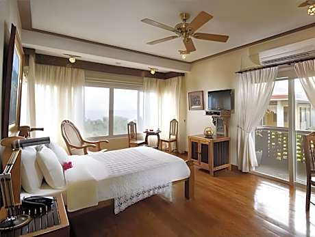 Equipped with air conditioning, this corner room has a king bed and antique furnishings. The room is fitted with a balcony that comes with outdoor furniture. A flat-screen cable TV with DVD player and a safety deposit box is also included in the room, while the private bathroom offers free toiletries, bathrobes, and slippers.