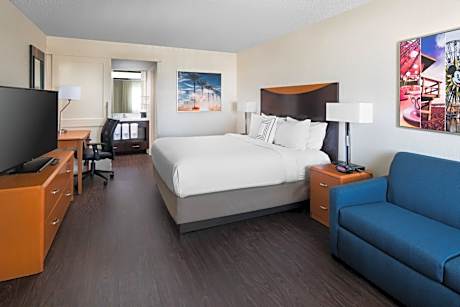 Neighboring Disneyland and 0.3 mi from the entrance of Disneyland, Fairfield by Marriott Anaheim Resort offers rooms with cable TV. The hotel features an outdoor pool and a games room. The spacious rooms at Fairfield by Marriott Anaheim Resort have free WiFi. Each room includes a coffee machine. Pizza Hut Express, Seattle's Best Coffee baked goods and a Grab and Go Market are located on site for convenience. Guests can enjoy the outdoor swimming pool with whirlpool. Guests can also play video games and air hockey at the hotels game room. The hotel also has laundry facilities available on site. Fairfield by Marriott Anaheim Resort is less than 1 mi from the Anaheim Convention Center and 3 mi away from the Honda Center and Angel Stadium.