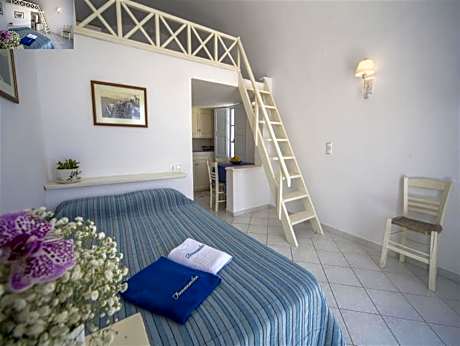 Hotel Anemomilos położony jest w miejscowości Oia, popularnym miejscu wypoczynkowym ze względu na spektakularny widok na wulkan i Morze Egejskie. Do dyspozycji Gości hotelu Anemomilos jest restauracja, sezonowy basen, basen dla dzieci oraz sala telewizyjna. Do dyspozycji Gości jest również parking i salon. Hotel Anemomilos oferuje 13 przestronnych, stylowo urządzonych pokoi, apartamentów i studiów. Większość z nich dysponuje werandą z widokiem na Morze Egejskie. Każdy apartament wyposażony jest w klimatyzację, Wi-Fi i telewizor z płaskim ekranem. Dogodna lokalizacja obok przystanku autobusowego sprawia, że Anemomilos jest idealną bazą wypadową do zwiedzania wyspy.