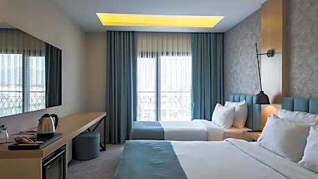 ANGEL'S PARK HOTEL features a fitness center, garden, a shared lounge and restaurant in Denizli. Providing a bar, the property is located within 1.3 miles of Denizli Chamber Of Commerce. The property provides a 24-hour front desk, airport transportation, room service and free WiFi throughout the property. Guest rooms are equipped with air conditioning, a flat-screen TV with satellite channels, a minibar, a electric tea pot, a shower, free toiletries and a closet. Each room includes a safety deposit box, while selected rooms contain a terrace and others also offer city views. Spa and wellness facilities including a sauna and a hammam are at guests' disposal during their stay at the hotel. Hierapolis, Pamukkale, Turkey is 10 miles from ANGEL'S PARK HOTEL, while Pamukkale Travertines is 10 miles away. Denizli Çardak Airport is 40 miles from the property. License Number(s): 19310