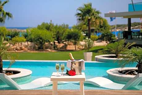 Asterias Beach Hotel is located in a quiet location in Ayia Napa, walking distance from local bars and restaurants. The resort features a Blue Flag beach and offers free Wi-Fi throughout. The hotel offers spacious, modern rooms with large balconies overlooking the gardens. The buffet-style breakfast is included in the room rate and can be enjoyed on the poolside terrace. There is an international restaurant and a taverna, serving many local specialties. Asterias Beach has a wellness center including sauna, hot tub, steam bath and massage facilities. The complex has its own supervised kids’ club and paddling pool and there is a mini market for your convenience.