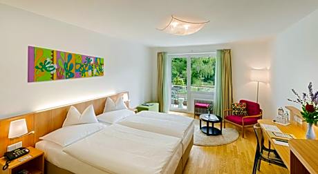 Located right in the Kurpark in the center of Baden, only 656 feet from the casino and the Römertherme Thermal Spa, the At the Park Hotel offers a lobby bar, a spa area with a sauna, and a fitness center. Free WiFi is available. The rooms feature a flat-screen cable TV, wooden or carpeted floors, and a bathroom. They offer views of the park or the Haus der Kunst Museum. Some rooms come with air conditioning and balcony. The double beds are fitted with 2 separate mattresses. The terrace overlooks the park and the casino. In fine weather, breakfast as well as coffee and cakes are served there. Hotel At the Park features 6 modern seminar rooms, an in-house vinotheque, and a wine tasting room.