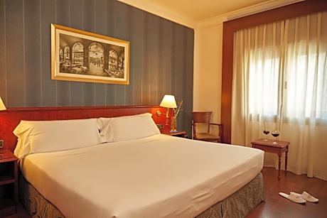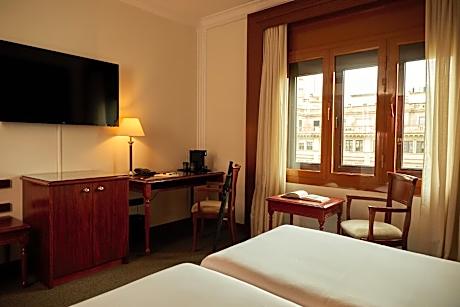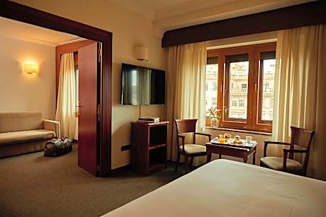This elegant, air-conditioned room features satellite TV and carpet or parquet flooring. Rooms are soundproofed and have a mini-bar, work desk and a safe.