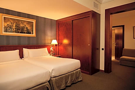 El Avenida Palace Hotel is set on Barcelona’s Gran Via, 5 minutes’ walk from Plaza Catalunya, La Rambla and Paseo de Gracia. Its grand interior features an impressive staircase and marble columns. Many famous guests have stayed at the Hotel Avenida Palace, including the Beatles in 1965. The elegant air-conditioned rooms feature satellite TV and carpeted or parquet floors. Rooms are soundproofed and have a mini-bar, work desk and a safe. The hotel's panoramic rooftop terrace offers views over the city, a sun deck and a swimming pool. There is also a lounge bar, a 24-hour front desk and both free WiFi and room service are available.