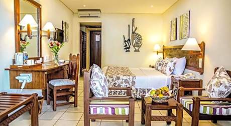Baobab Beach Resort & Spa offers accommodations in Diani Beach. With a lush garden, the resort overlooks the Indian Ocean and offers a 3-tier pool, a spa center and a selection of restaurants. The spacious rooms include a flat-screen TV, seating area and views of the sea or pool. Rooms are fitted with a private bathroom. Extras include free toiletries and a hair dryer. Baobab Beach Resort & Spa has a selection of bars and restaurants offering a range of international and African cuisine as well as seafood dishes accompanied by a wide selection of wines. Evening entertainment is organized on selected nights. For relaxation, guests can enjoy massage and beauty treatments at the spa. There is a steam room, hydro bath, hot tub and a fitness center. You can play tennis at this resort, dart, table tennis and and there are watersport facilities. The area is popular for golfing and snorkeling. The Diani Beach Shopping Center is 2.7 mi from Baobab Beach Resort and Moi International Airport is 29 mi from the property.