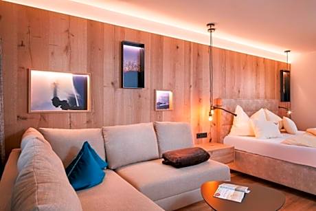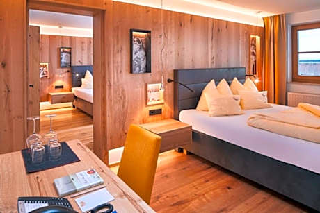 This spacious suite includes 1 living room, 2 separate bedrooms and 1 bathroom with a bath and free toiletries. The suite has parquet floors, a seating area with a flat-screen TV, a mini-bar, a tea and coffee maker as well as mountain views. The unit has 4 beds.