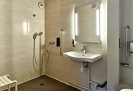 Chambre Double Accès Handicapé is 129 square feet and includes a double bed 131-150 width and is Wheelchair-accessible.