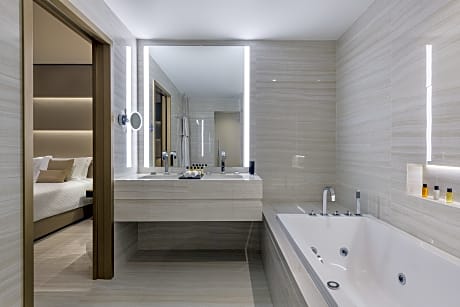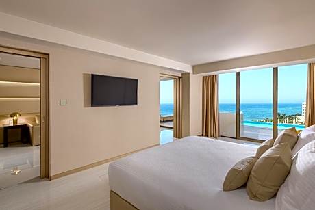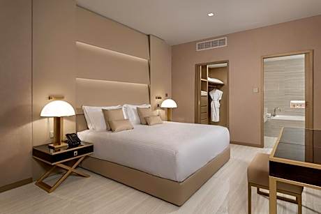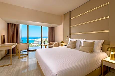 This 5-star resort hotel is just 984 feet from Ayia Napa Beach and 0.6 mi from Ayia Napa’s center. All rooms have spacious infinity glass balconies, while most come with sea views. All rooms at Amarande - Adults Only include a flat-screen satellite TV, room automation panel system, USB charging points and bathrooms with double sink vanity sets. Free WiFi is available throughout. Amarande - Adults Only has a large outdoor pool and terrace area surrounded by sun loungers. Guests of Prestige Swim-up Suites are also offered a private deck with sun loungers and an exclusive swimming pool. There’s also a gym with modern facilities and a hot tub, sauna, an indoor pool and a steam bath. Guests can also play tennis on floodlit hard-surface tennis courts. Amarande - Adults Only has 2 restaurants. The main buffet restaurant offers live cooking stations, a healthy section and local delicacies corner each night. Guests can also eat at the a la carte restaurant which offers spectacular Mediterranean cuisine. There’s also lobby bar and poolside bar serving drinks and light snacks.