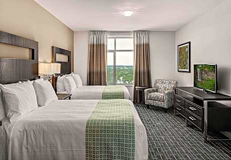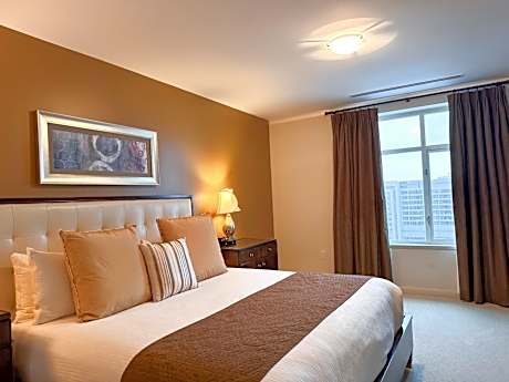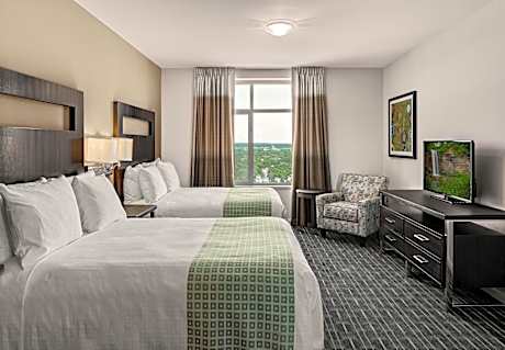 These luxury apartments are 5 minutes’ walk from the Mayo Clinic and Mayo Park. The apartments offer a fully equipped kitchen, with cooker and full size refrigerator. The property is connected to the Mayo Clinic by skyway system. Apartments include a dining area equipped with wine glasses and 4 place settings at Broadway Plaza, Trademark Collection by Wyndham. The apartments also have 2 bathrooms and private balconies. Guests can work out in the fitness center downstairs or relax with a swim in the indoor pool or a soak in the hot tub. The apartment building islocated in the heart of Central Rochester, with features shopping, dining and entertainment. The Apache Mall is 1 mile from the building.