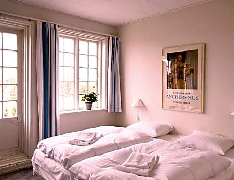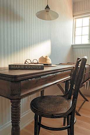 Brøndums Hotel in Skagen is authentic Danish cultural history and has been a gathering point and meeting place in Skagen since the time of the Skagen Painters. Look forward to a truly extraordinary hotel experience characterized by tradition, quality, culinary delights, and classic hospitality. When you visit Brøndums Hotel, you can relax in the fireplace lounge, enjoy local ingredients from nature's own pantry served in our restaurant - accompanied by tasteful grapes from our award-winning, historic wine cellar. And of course, stay overnight in our cozy rooms, all individually decorated in an authentic style. When booking, you must decide whether you want to stay in the hotel's iconic main building or live like royalty at Admiralgården (located 2 minutes from the hotel). The hotel offers historic rooms where you can choose from rooms, where you either share a bathroom or have your own. Brøndums Hotel offers free parking, charging stations, your dog is warmly welcomed at Admiralgården, and with 656 ft to the beach and a 5-minute walk to the city's main shopping streets with many high-end and specialty stores - the location is ideal. An ideal combination with your stay at Brøndums Hotel is one of Denmark’s most recognized and cultural art experiences – Art Museums of Skagen – that shares a common history with the hotel and is located just across from the hotel. We look forward to seeing you!