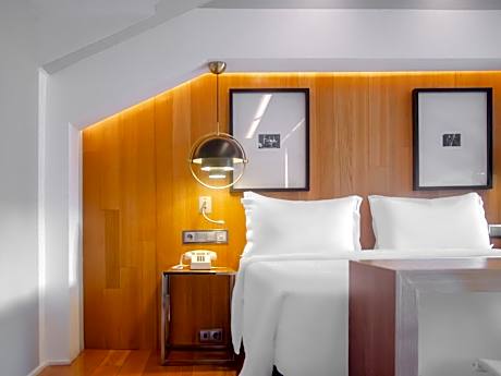 This small and cozy air-conditioned room includes a flat-screen TV, fridge, Nespresso coffee machine, Smeg kettle, Marshall Sound Speaker and WiFi. It also includes a marble bathroom. It is not possible to accommodate extra beds in this room.