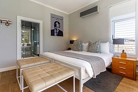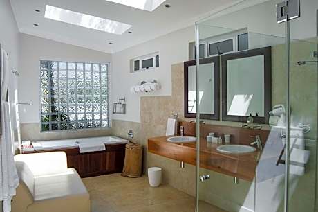 Tucked away on a large, private estate overlooking Camps Bay and the Atlantic Ocean, this boutique hotel combines stunning views with first-class facilities. Nestled against the Twelve Apostles Mountain Range, Camps Bay Retreat Hotel is the ideal choice for guests looking to explore Cape Town in style. Wake up to the sound of rolling waves. Whether you stay in the old manor or modern annex, ocean views are ensured at all times. Privacy and tranquility are guaranteed at Camps Bay Retreat, thanks to the small number of guest rooms and natural setting. Stroll over the estate and discover waterfalls and mountains streams. Alternatively, you can have a swim in the outdoor pool or soak up the sun on your balcony. Why not treat yourself to a delicious meal on the veranda. While you indulge in seasonal specialties, the attentive staff can organize a rental car, reserve various day trips or see to it that your laundry is taken care of before your next Padel match. Turn-down service further complements your stay. Deck Rooms can be reached via a swing bridge and impress with their modern furnishings, glass front and open-plan design. Enjoy a bath in your free-standing bath or marvel at sea views from one of your balconies. Rooms in the manor boast a more traditional interior and feature elegant antique furnishings.