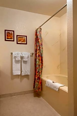 This fully furnished apartment with a full kitchen also includes a spa bathtub. A living area and dining area are also included.
