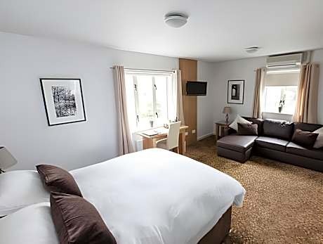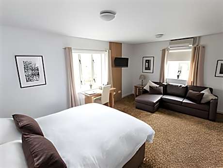 This spacious air-conditioned suite features a king-size bed and en-suite with walk-in shower with hairdryer. The room also benefits from tea and coffee making facilities, a sofa, a wall-mounted flat-screen TV, free Wi-Fi, a safe and writing desk.