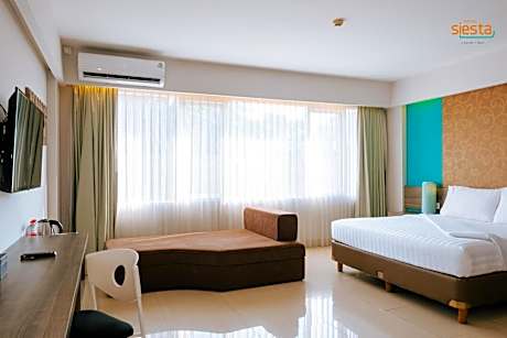 Siesta Legian Hotel provides flawless service and all the necessary facilities for visitors. Stay connected with your associates, as complimentary Wi-Fi is available during your entire visit. The hotel offers taxi and car hire amenities for your ease in navigating around Bali. When arriving by car, you'll be grateful for the on-site complimentary parking at hotel. The hotel offers reception amenities including luggage storage and safety deposit boxes to ensure a comfortable stay for guests.Should you require it, the tours can even assist you in booking tickets and securing reservations for the finest shows and events in the vicinity. Whether it's an extended stay or simply needing fresh attire, laundromat and laundry service provided by hotel ensures your cherished travel garments stay spotless and accessible. Your stay will be comfortable with the presence of room service and daily housekeeping as an in-room amenity for your relaxation and enjoyment.In order to ensure the utmost level of relaxation, the guestrooms feature an inviting design and are equipped with all basic necessities, creating a delightful stay experience. To ensure a pleasant stay, a selection of rooms at hotel come furnished with linen service, blackout curtains and air conditioning, all designed with your ease in mind. In select rooms, visitors can enjoy a touch of amusement with the availability of television and cable TV for their entertainment needs.Within specific rooms, a refrigerator, a coffee or tea maker, bottled water, instant coffee, instant tea and mini bar is conveniently available for your use. Understanding the significance of bathroom facilities in enhancing visitor contentment, hotel offers a hair dryer and toiletries within a few chosen chambers. Start your day stress-free at Siesta Legian Hotel as breakfast is made available for you on the premises.Various excellent meal offerings at hotel ensure that enticing and easily accessible options are constantly available.Upon arrival, make sure to explore bar and nightclub to experience enjoyable evening entertainment within the premises.Throughout the day, engage in the entertaining activities available at Siesta Legian Hotel. Make sure to discover the readily available beach at hotel. Unwind and conclude each day delightfully by stopping by massage and spa, ensuring a soothing experience. Unwind by the pool at hotel and cherish a leisurely moment. Enjoy a refreshing beverage al fresco at hotel's poolside bar savoring your preferred concoction.
